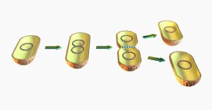 شكل توضيحي للانقسام الثنائي البسيط للبكتيريا