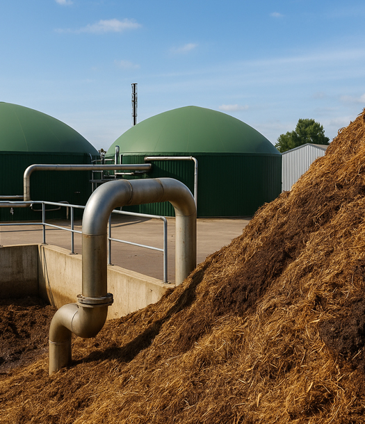 1- إنتاج الوقود الحيوي: عبر تحويل بقايا المحاصيل الزراعية ومخلفات الصناعات الغذائية إلى غازات حيوية أو إيثانول حيوي يُستخدم في توليد الكهرباء أو النقل.