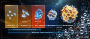 شكل 2: تكوُّن الحصوات من خلال نمو البلورات ضمن العملية الفيزيائية – الكيميائية
