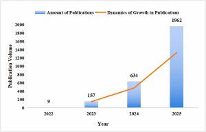 تُظهر الأرقام أن حجم المنشورات العلمية حول الذكاء الاصطناعي التوليدي في التعليم العالي شهد نموًا هائلًا في السنوات القليلة الماضية. ففي عام 2022، وهو العام الذي أُطلق فيه برنامج “تشات جي بي تي”، لم يُنشر سوى 9 مقالات حول هذا الموضوع الناشئ. وبحلول عام 2023، قفز هذا العدد إلى 157 منشورًا، ثم تسارع هذا الاتجاه بشكل كبير ليصل إلى 1962 منشورًا في عام 2025 (حتى شهر نوفمبر)، وهو ما يمثل معدلًا يقارب 180 مقالًا جديدًا شهريًا. ويُظهر هذا التطور، وفقًا لمؤلفي الدراسة، “تعبئة عالمية غير مسبوقة” للمجتمع الأكاديمي استجابةً للتحديات والفرص التي يطرحها تأثير الذكاء الاصطناعي على ممارسات التدريس والبحث العلمي والنزاهة الأكاديمية.