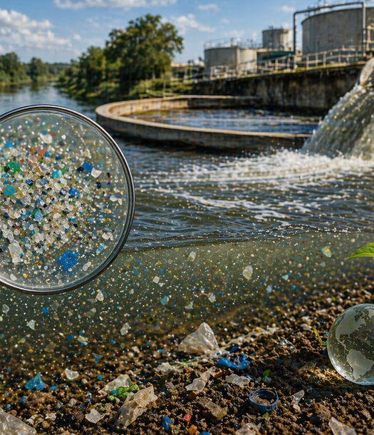 وقد تم رصدها على نطاق واسع في البيئة، بما في ذلك مياه الصرف الصحي. وتنشأ هذه الجسيمات من مصادر متنوعة، منها تحلل المخلفات البلاستيكية الكبيرة، وانطلاق الألياف البلاستيكية من المنسوجات، والخرزات البلاستيكية الدقيقة الشائعة الاستخدام في منتجات العناية الشخصية. وفي مياه الصرف الصحي، يمكن للجسيمات البلاستيكية الدقيقة أن تمر عبر عملية المعالجة وتدخل البيئة، مما يُلحق الضرر بالتنوع البيولوجي من خلال احتمال دخولها السلسلة الغذائية.