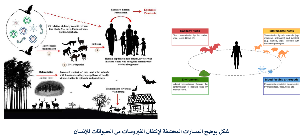 الفيروسات المتفشية أوالوبائية أو التي تسبب الجائحات، هي فيروسات تستهدف عموماً، وتصيب الحيوانات البرية مثل الخفافيش ولا تمرضها. أي أن هذه الحيوانات تمثل مستودعاً للفيروسات، وقد لا تنتج عن إصابتها بها أعراضا شديدة، أي لاتسبب لها أمراضا قاتلة. وغالباً ما يحدث كل عام تفشي لأحد تلك الفيروسات، خاصة عندما تنتقل إلى أحد الحيوانات الأليفة المنزلية ومنها للإنسان، ومن هنا تعتبر نقطة إنطلاق وانتشار واسع لهذاه الفيروسات.