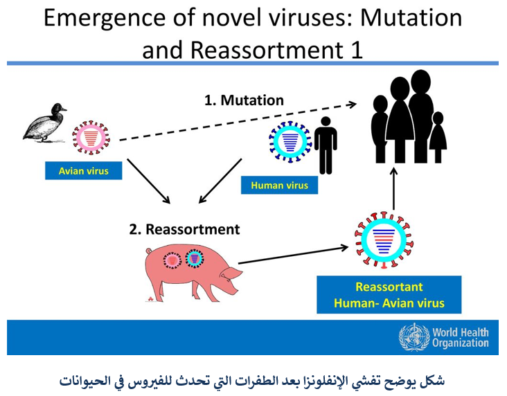 إذا حدث وأصيبت الخنازير بأكثر من سلالة من فيروسات الإنفلونزا في وقت واحد، ولأن الخنازير تمثل النموذج والبيئة المثالية التي تحدث فيها عملية خلط سلالات الإنفلونزا، مما يترتب على ذلك ظهور سلالات جديدة من فيروسات الإنفلونزا، وذلك بسبب إحتواء خلايا الخنازير على مستقبلات تشبه كثيراً تلك الموجودة في خلايا الإنسان.
