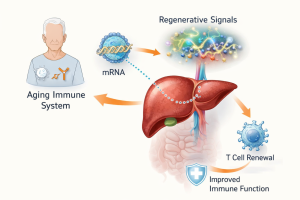 الفكرة التي لفتت الانتباه بقوة في نهاية 2025 هي استخدام mRNA محمّلًا في جسيمات دهنية نانوية بحيث يصل إلى الكبد، ثم يجعل خلايا الكبد تُنتج مزيجًا من عوامل إشارات معروفة بدورها في دعم تكوّن الخلايا التائية ومساراتها المبكرة، وبذلك يتحول الكبد لفترة وجيزة إلى “مصنع” لإشارات تعويضية تُنشّط مسارات تكوين المناعة التكيفية لدى الحيوان المُسن. علميًا، أهم ما في هذا النهج أنه يستهدف عنق زجاجة معروفًا في شيخوخة المناعة: نقص الإشارات التي تُعيد تغذية مسار إنتاج الخلايا التائية ونضجها، بدلًا من محاولة “إعادة شباب” كل خلية متقدمة في العمر على حدة. وفي التجارب قبل السريرية على الفئران، جرى اختبار مزيج ثلاثي من عوامل إشارية (يُشار إليها أحيانًا اختصارًا كحزمة واحدة) قُدّمت عبر mRNA، والنتيجة التي وُصفت في تقارير متعددة هي تحسن مؤشرات إنتاج الخلايا التائية وزيادة كفاءة الاستجابة المناعية في نماذج تلقيح، وكذلك تحسن في أداء علاجات مناعية معينة ضد السرطان مقارنة بفئران مسنة لم تتلقَّ هذا التدخل.